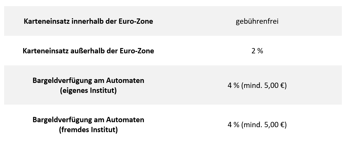 Innerhalb der Euro-Zone ist der Karteneinsatz Deiner Amex Platinum gebührenfrei. Das bedeutet, Du kannst in Deutschland oder dem EU-Ausland sorgenfrei mit Deiner Amex Platinum Card bezahlen. Lediglich wenn Du Deine American Express Platinum Card außerhalb der Euro-Zone einsetzt oder Geld von einem Automaten abhebst, entstehen Gebühren.